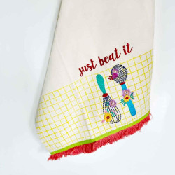 Un petit accessoire coloré dans la cuisine, ça fait du bien - accroche le joli torchon brodé JUST BEAT IT à ton armoire de cuisine et réjouis-toi de ses couleurs fraîches ! Les petits détails comme la languette de suspension de couleur fluo, la broderie de qualité et la bordure à franges en coton font de ce bel accessoire de cuisine un ustensile à la fois utile et précieux. Matériau : 100 % coton Taille : 50x70 cm